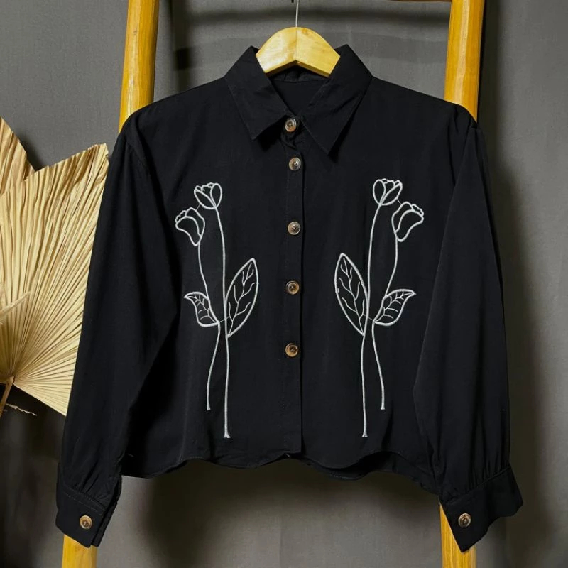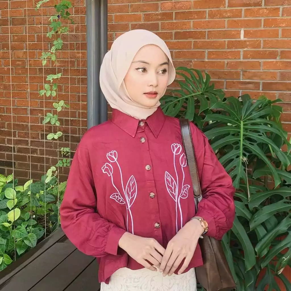 Atasan Wanita Kekinian Blouse Bordir Bunga Rayon Crop Pevita Series Premium Blouse Korean Style Lengan Panjang Murah