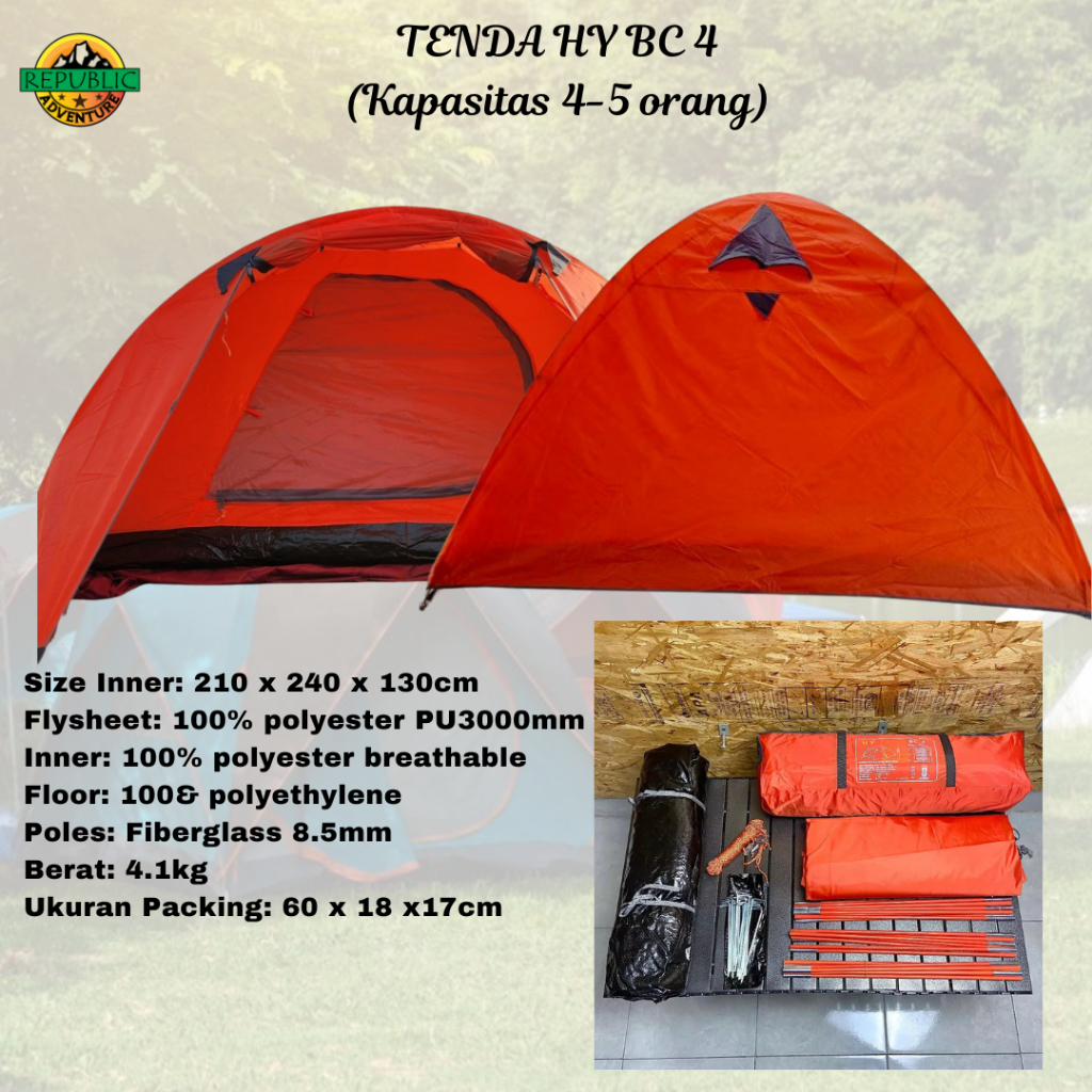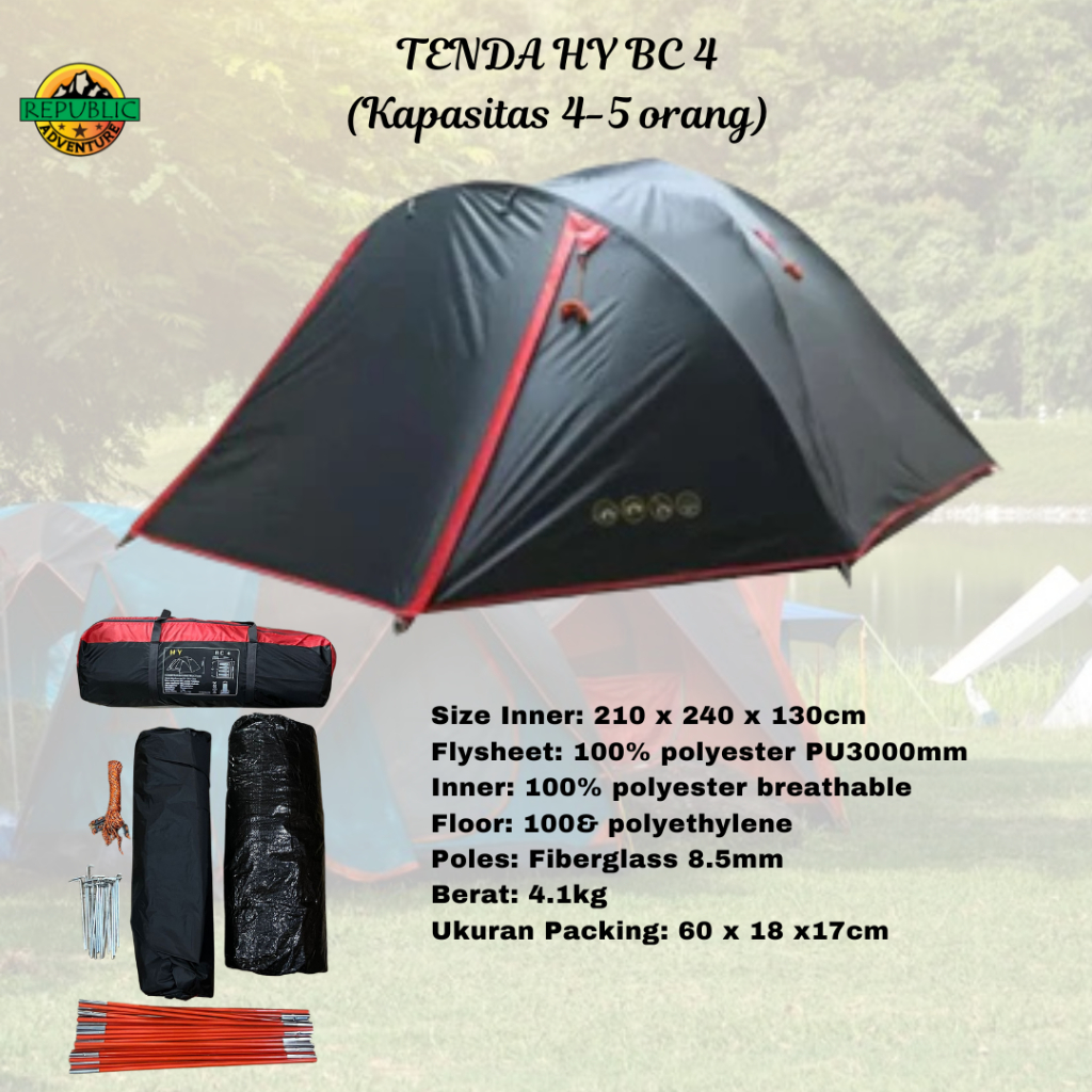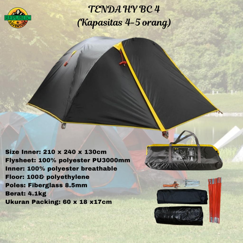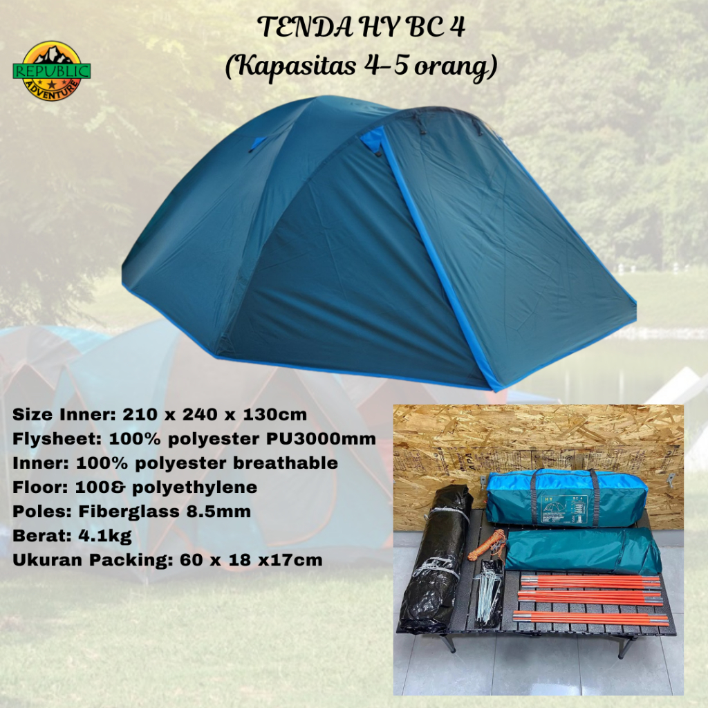 Tenda HY BC 4 Kapasitas 4-5 Orang Tenda Camping Outdoor LWY Double Layer Tenda Kemping