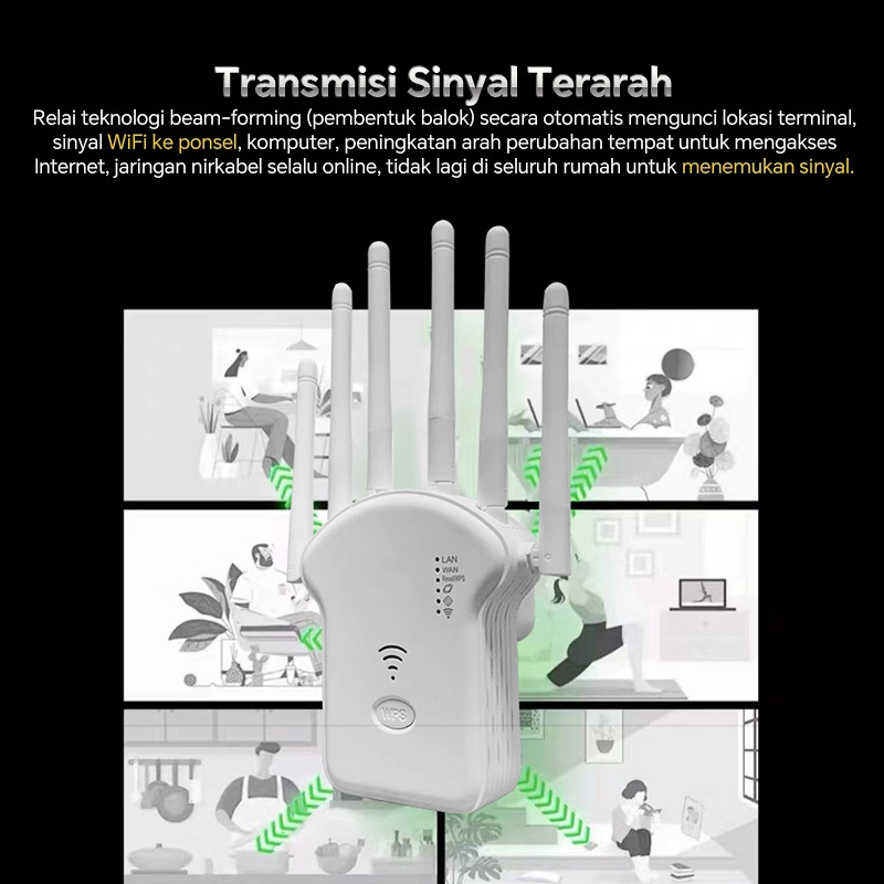 Wifi Extender Tanpa kabel Wifi Repeater Jarak Jauh 2.4G/5G 6 Antena1200Mbps portable repeater modem rumah paket data