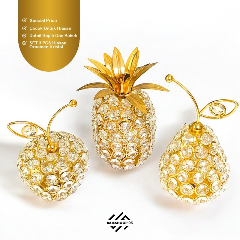 Ornamen Buah Kristal Paket SET 3 PCS / SET 3 PCS Hiasan Ornamen Kristal