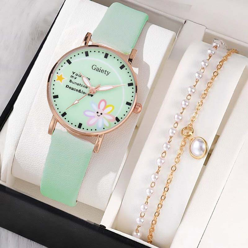 3PCS Jam Tangan Wanita Women's Quartz Watch Girls Cute All-match Watches