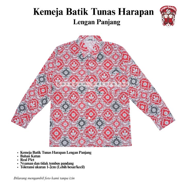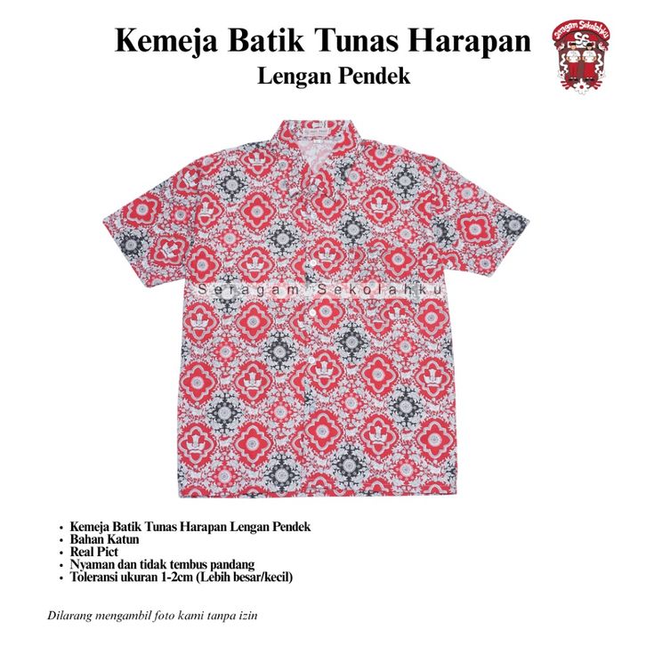 [Star] Kemeja Batik Merah SD Nasional Tunas Harapan & Tut Wuri Handayani Baju Batik Sekolah Seragam Sekolah Putra Putri