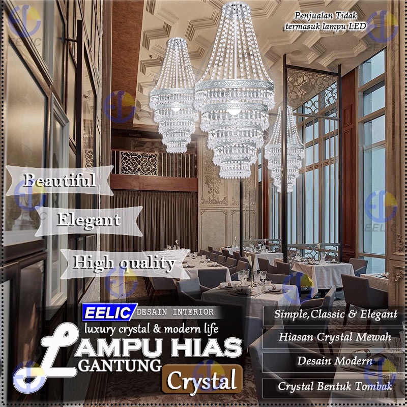 EELIC LHG-281 Lampu hias gantung crystal 5 layer memberi kesan elegant dan mewah desain interior modern