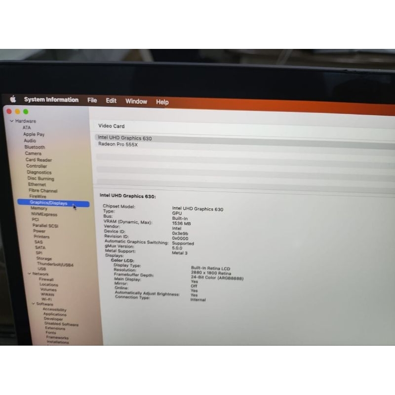 Macbook Pro ( Touchbar 15 in 2018 ) Ram 32 Ssd 1 tera Core i9 2(dual) Vga intel&Amd Mulus Grey/silver warnanya