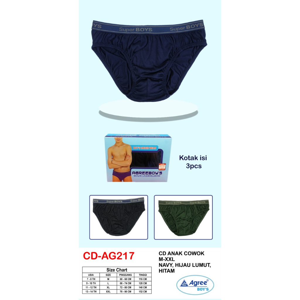 Isi 3 Pcs CD Anak Cowo 7-14 Tahun Agree Boys AG 217