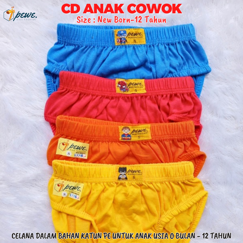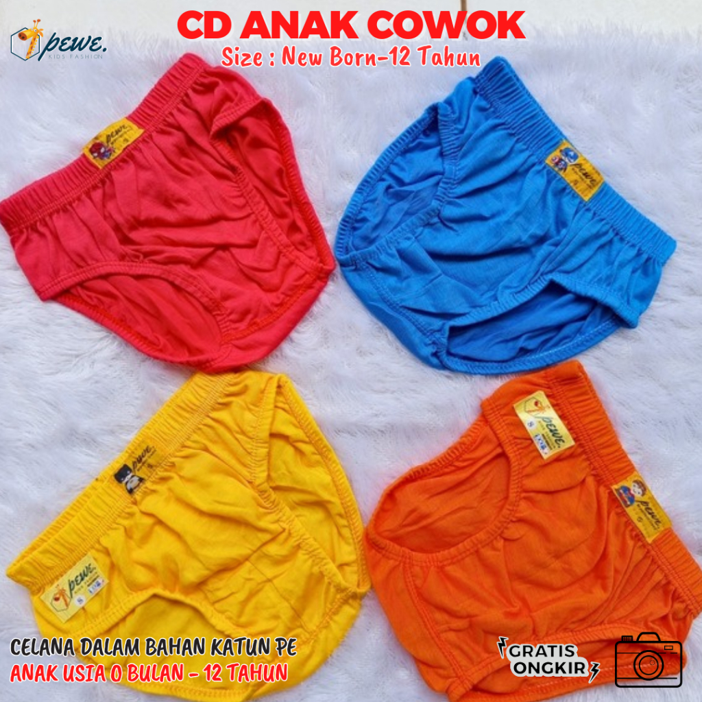 1 Lusin Celana Dalam Anak Laki-Laki Motif Polos Ukuran S - 3L Usia 1-12 Tahun | Sempak Anak Cowok
