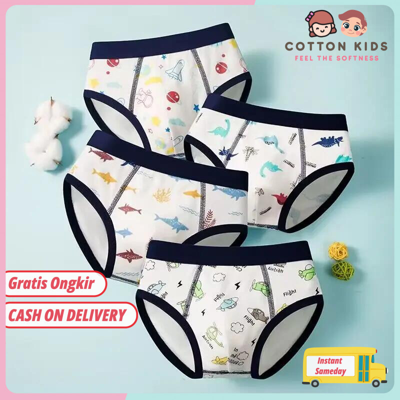 Celana dalam anak Laki laki Isi 4pcs katun Pakaian Dalam segitiga untuk bayi laki-laki COTTON KIDS