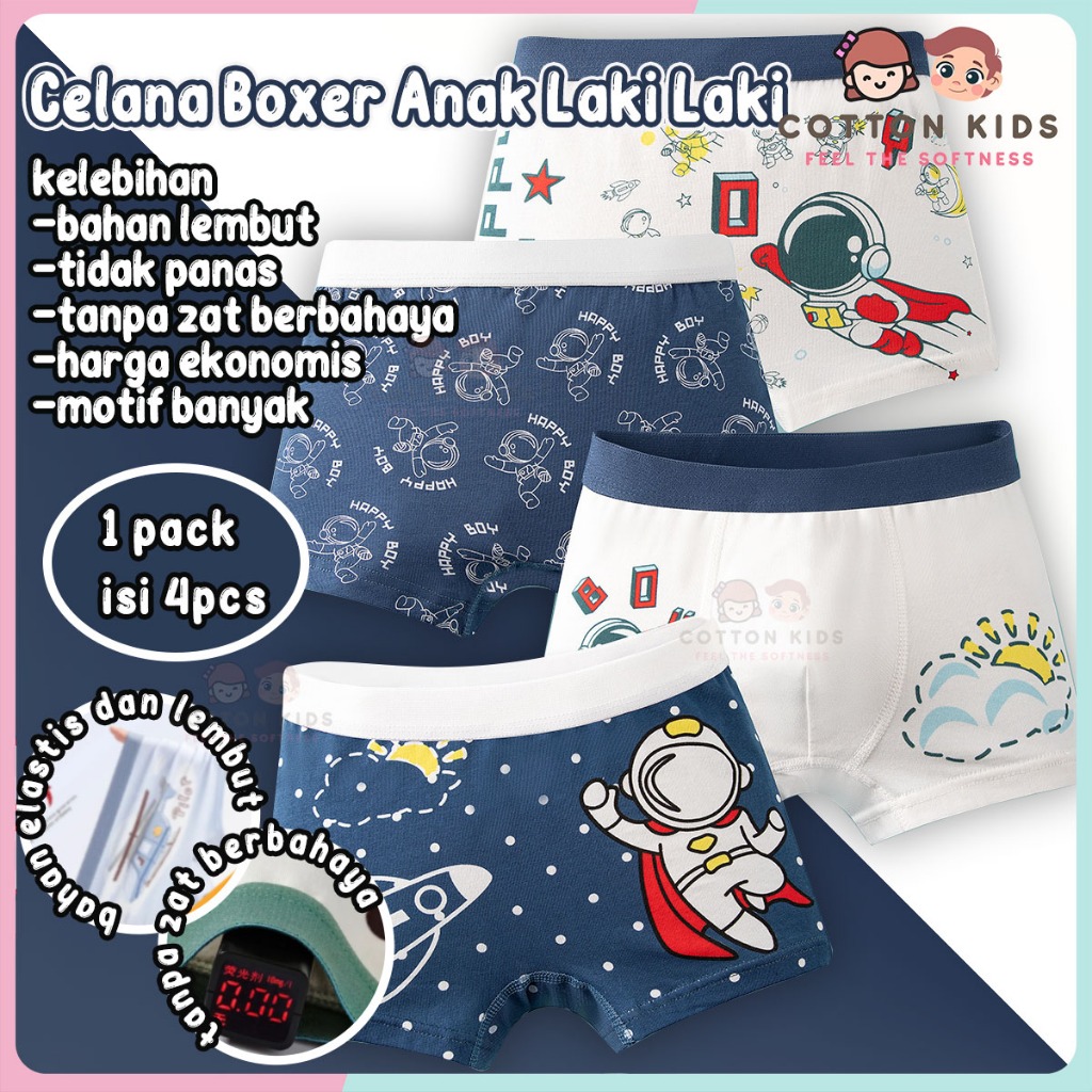 Cotton Kids 1 PACK ISI 4PCS Celana Boxer Anak Laki Laki karakter Celana Dalam Boxer Anak Laki Laki
