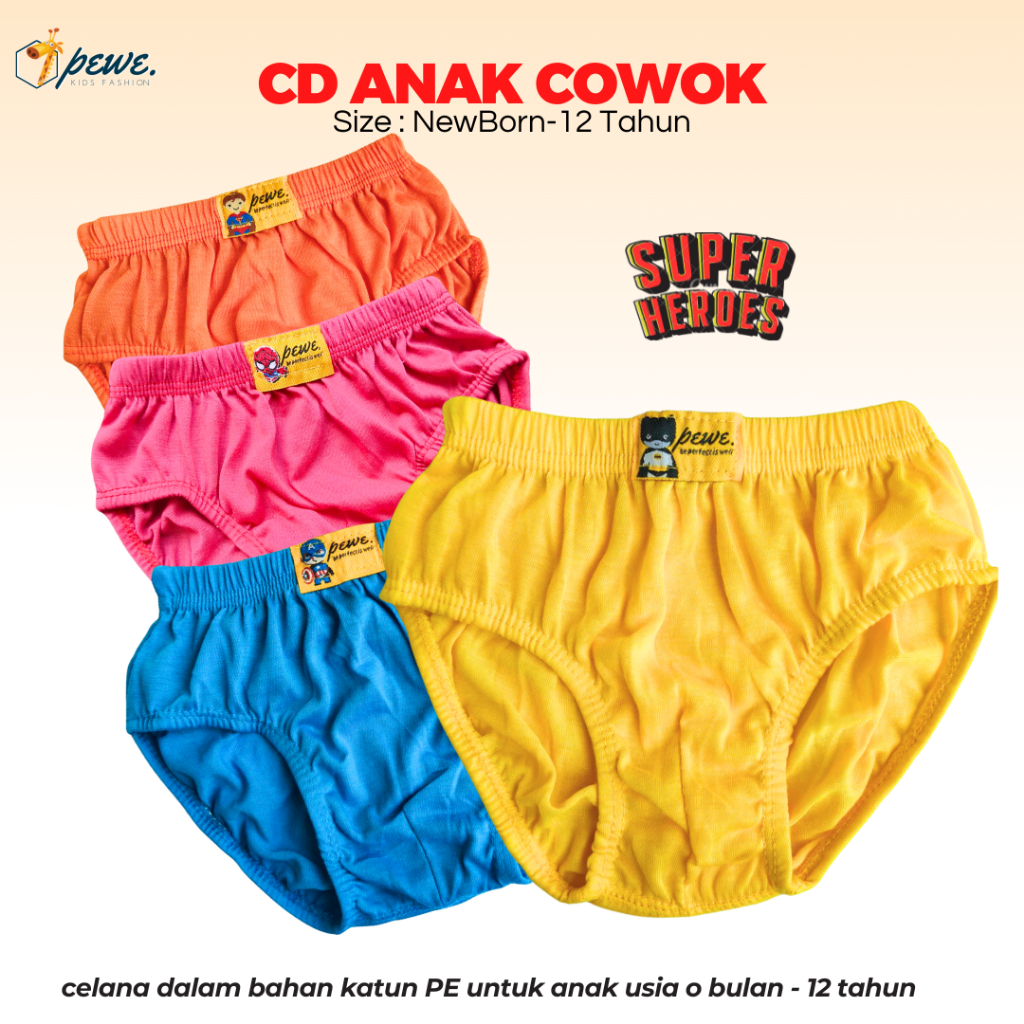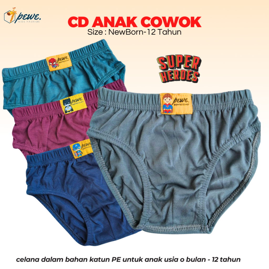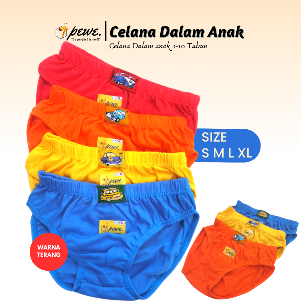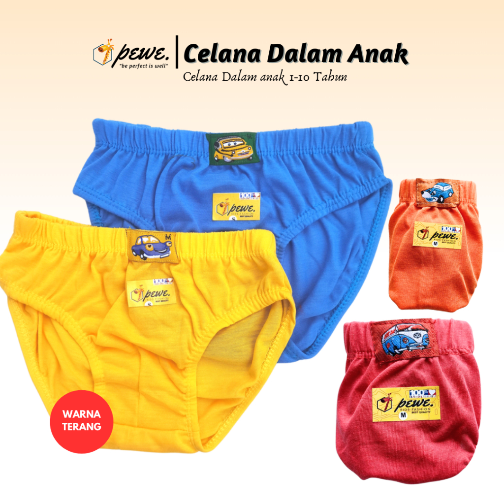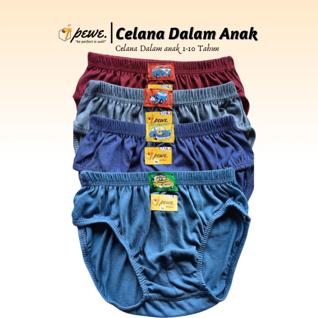 1 Lusin Celana Dalam Anak Laki-Laki Motif Polos Ukuran S - XL Usia 2-10 Tahun | Sempak Anak Cowok