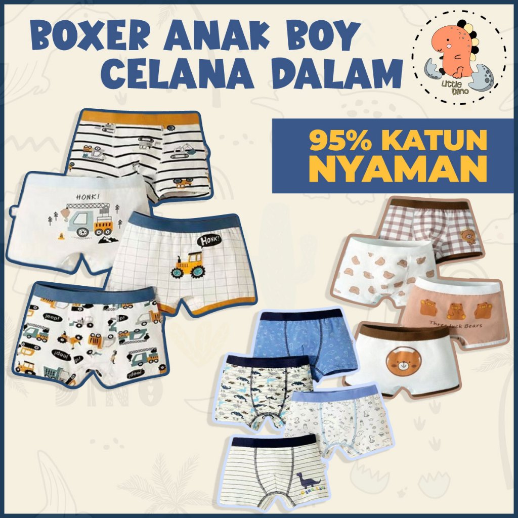 Littledino Boxer Celana Dalam Anak Laki Laki CD Bayi Underwear Cowok Set 4pcs Katun Murni (1-14 Tahun)