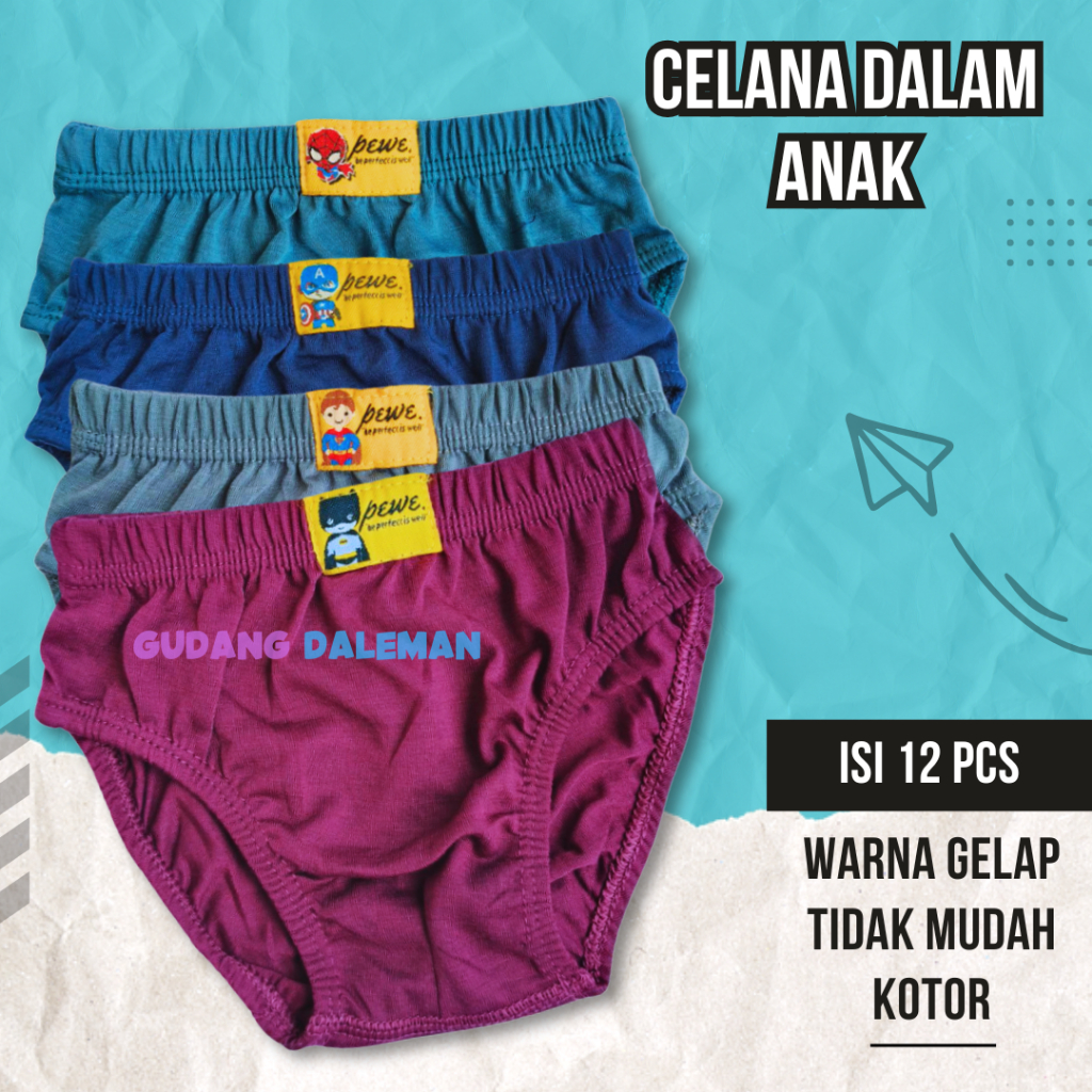 12 Pcs Celana Dalam Anak Laki Laki Logo Karakter Kartun Super Hero CD Cowok