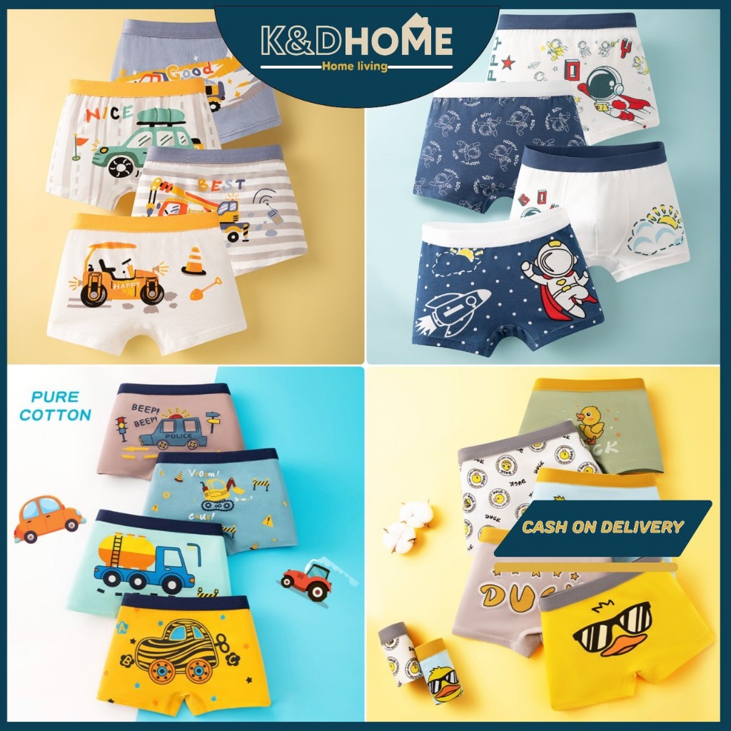 Kiddy 4Pcs Celana Dalam Anak Laki-Laki Boxer Kartun – Lembut, Nyaman & Anti Gerah | Katun Premium