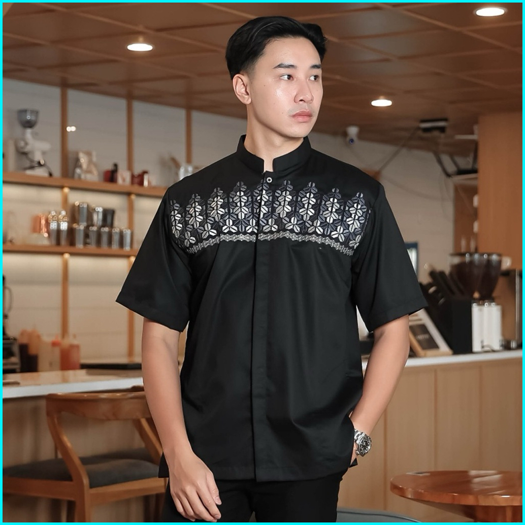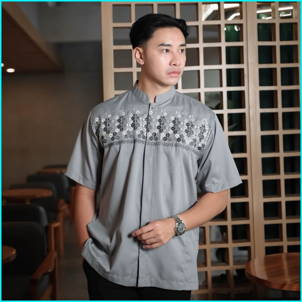 Baju Koko Pria Bordir Tangan Pendek Katun Madina Warna Katun Ag11