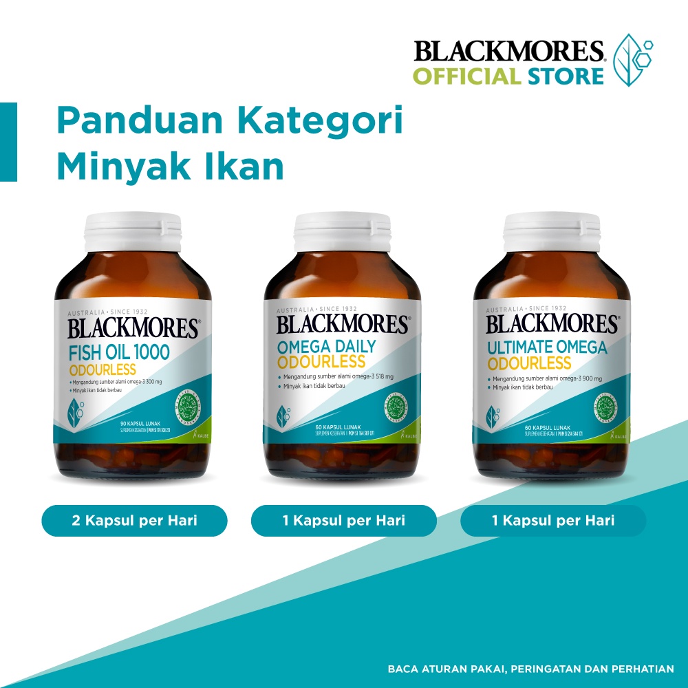 Blackmores Odourless Fish Oil 1000 Minyak Ikan Tidak Berbau 2 Kapsul Sehari Isi 180 Kapsul (Membantu Memelihara Kesehata