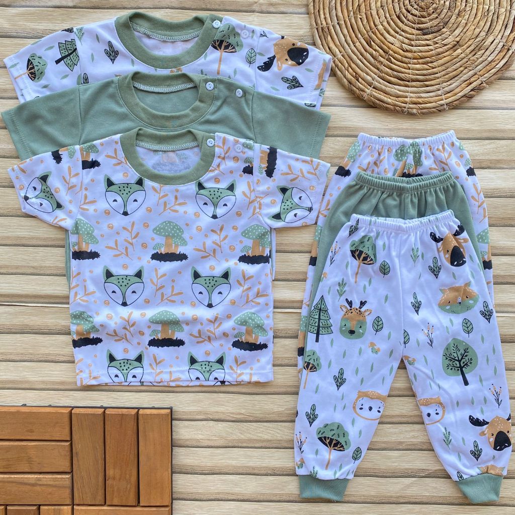 Paket 3 Set Piyama Bayi Unisex Oblong Pendek Celana Panjang 3-12 Bulan