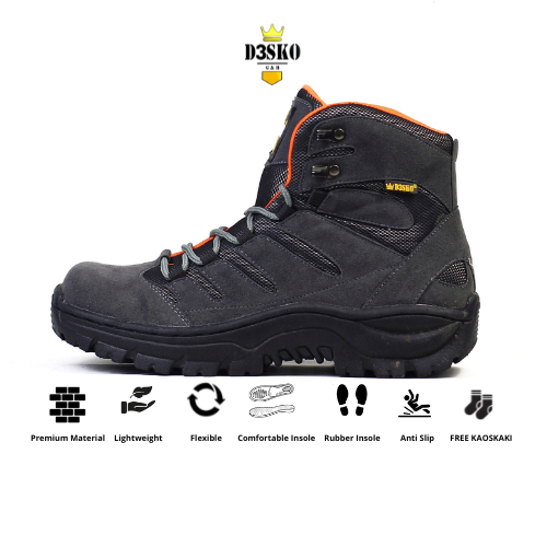 D3SKO G&B - Sepatu Boots Pria D3sko Crane Safety Pria Ujung Besi Warna Gray Orange