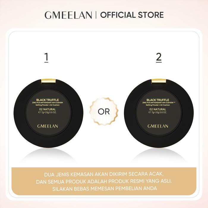 GMEELAN 2PCS SET BLACK TRUFFLE PCA ZINC ANTIOKSIDAN AIR CUSHION 7G+10G +KRIM SEA BUCKTHORN GLUTA LAZY CREAM 30G, MERATAKAN WARNA KULIT - 01 IVORY+LAZY CREAM