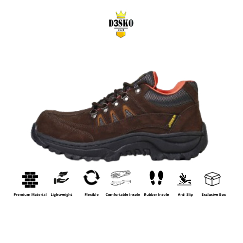 D3SKO G&B - Sepatu Boots Pria D3sko Buldozer Safety Pria Ujung Besi Warna Coklat Orange