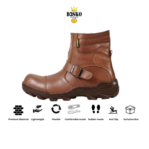 D3SKO G&B - Sepatu Boots Pria D3sko Apollo Safety Pria Ujung Besi Warna Tan