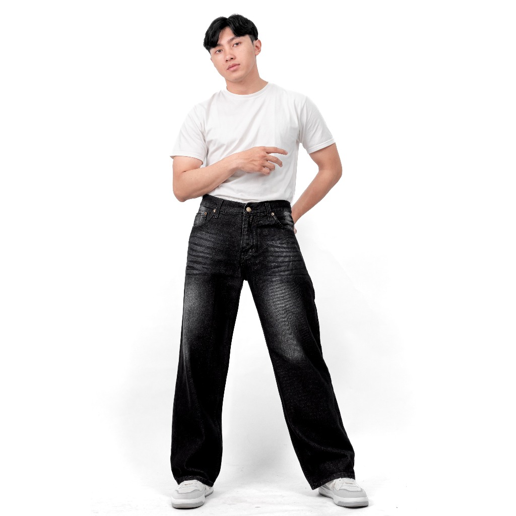 Gizmo - Celana Jeans Wide Leg Wisker Lebar Gombrong Skena Black Wisker pria loose fit jumbo big keren Bahan Denim