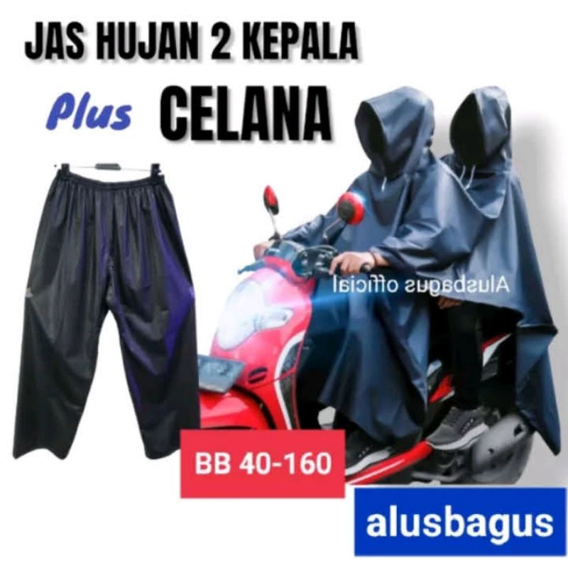 JAS HUJAN 2 KEPALA DAN CELANA PRIA WANITA BAHAN PVC KARET TEBAL ANTI REMBES