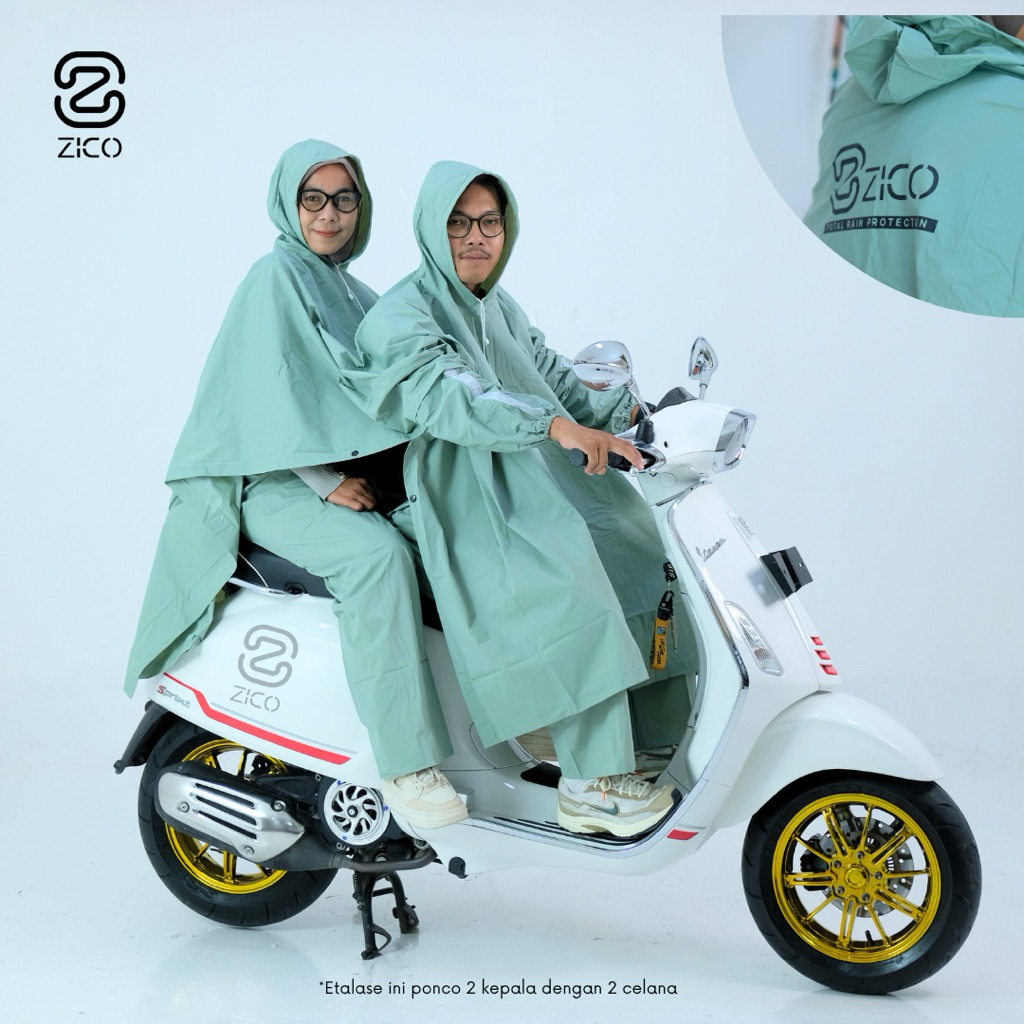Jas Hujan Ponco Jumbo 2 Kepala + 2 Celana Full Hot Press Tanpa Jahitan Anti Rembes Terlaris By ZICO
