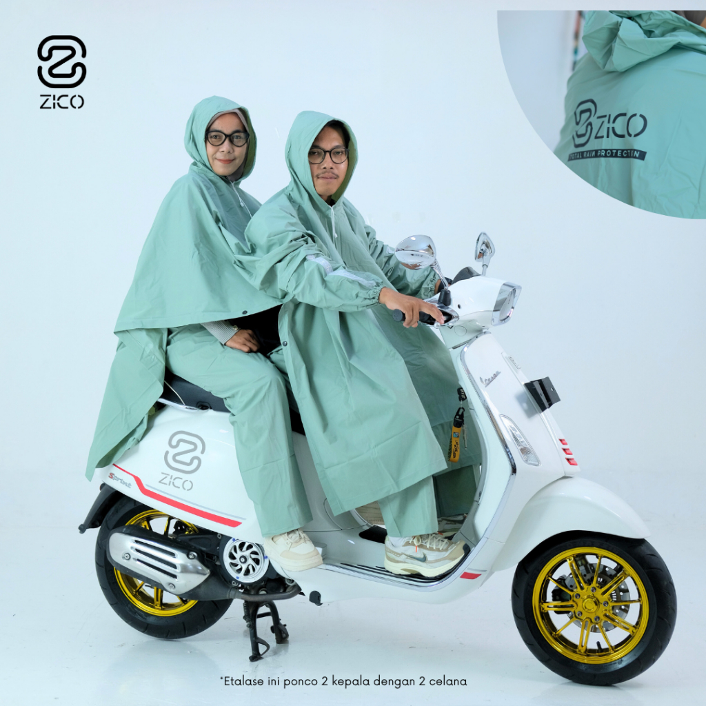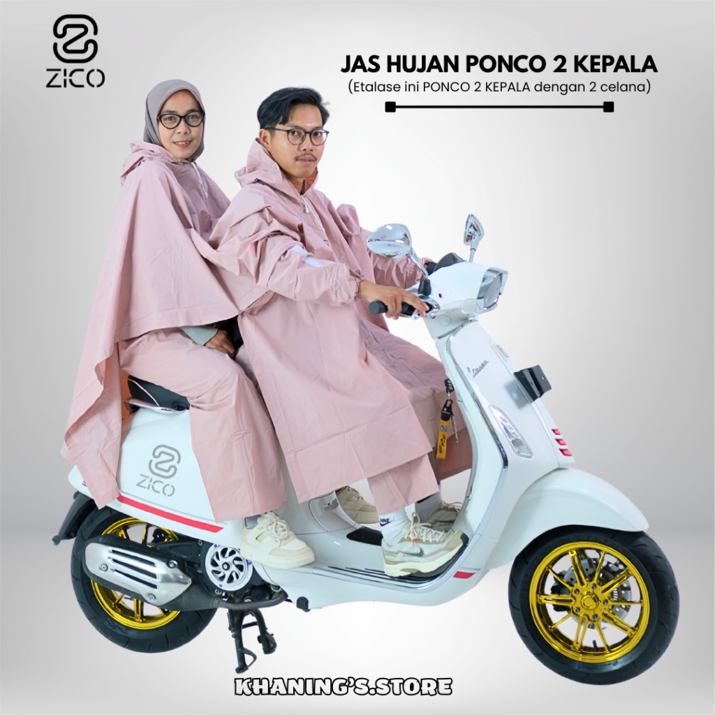 Jas Hujan Ponco 2 Kepala + 2 Celana By Zico - PVC Full Press , Tanpa Jahitan , Anti Bocor