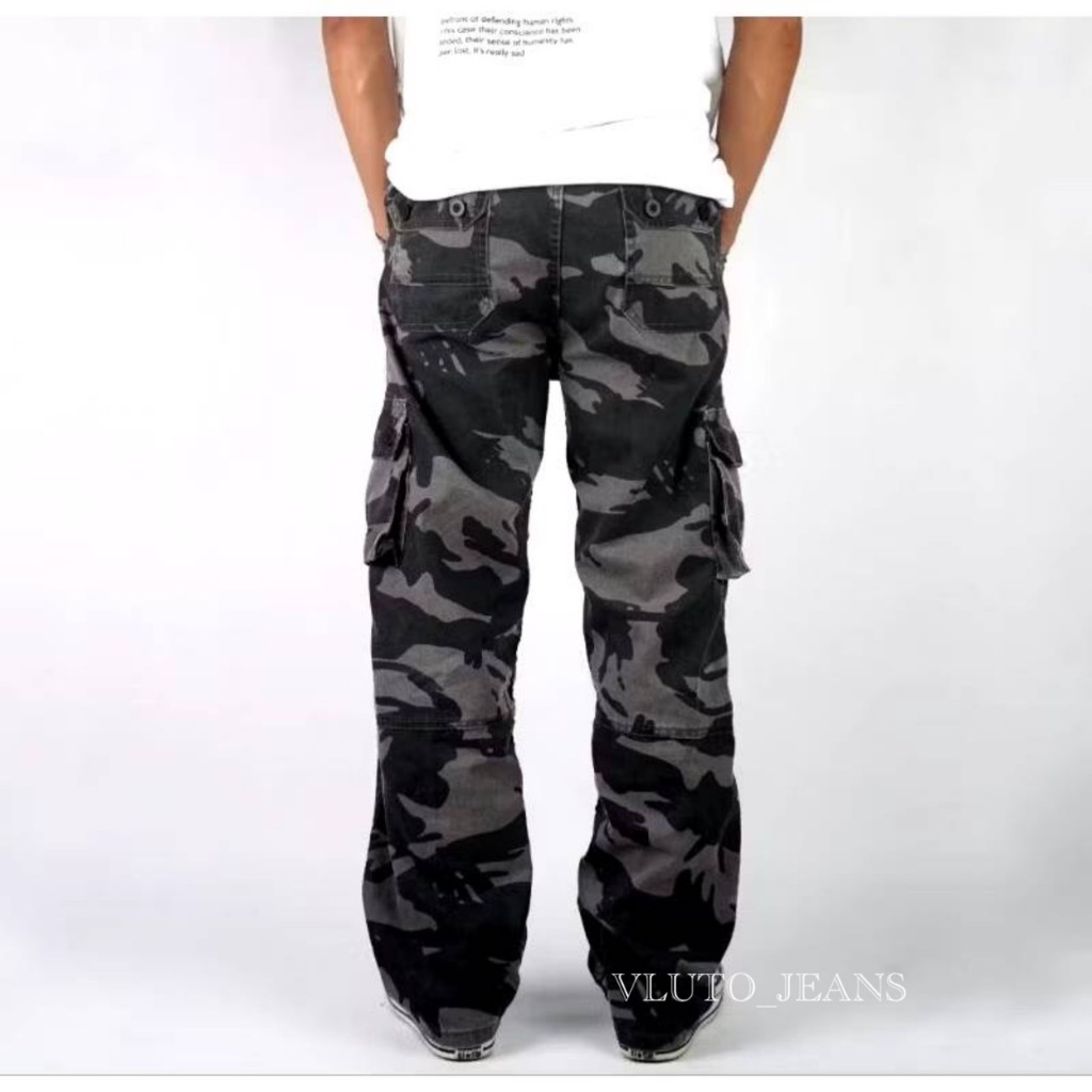 Celana Cargo Pants Loreng Pria Motif Camo Gombrong Bahan Reguler Fit Tidak Melar Size S M L XL 36 38