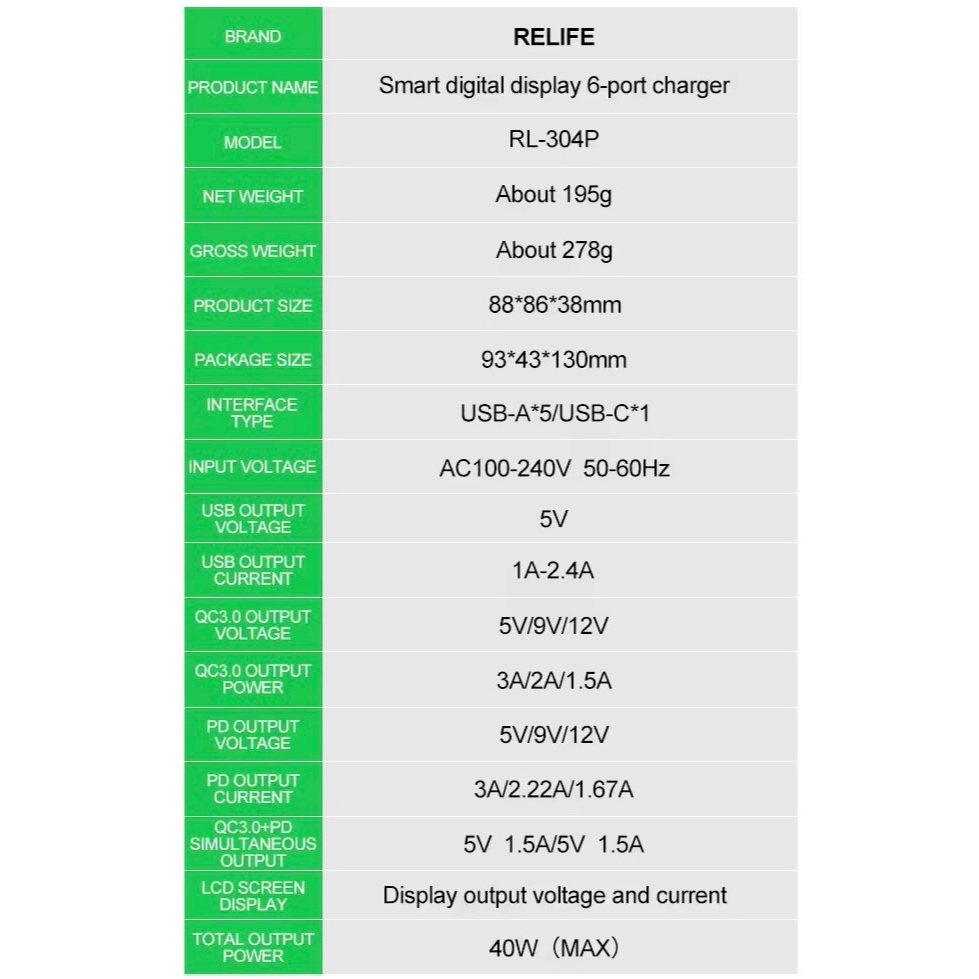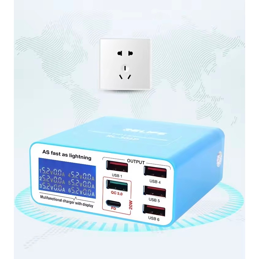 Adaptor Charger 6 Port USB Schematic Fast Charging - Relife RL-304P