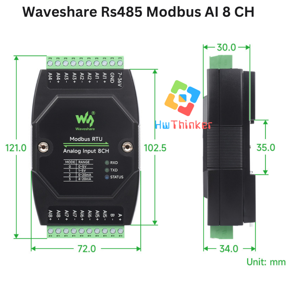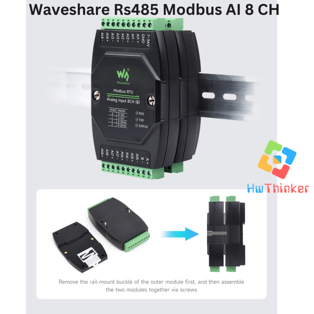 Waveshare Modbus RTU RS485 8 CH Analog Input 8AI Isolated Current 0-20mA 4-20mA DIN RAIL Industrial Grade Analog Remote