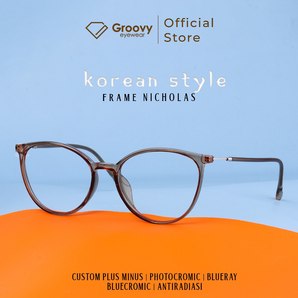 Groovy Eyewear - Frame Kacamata Minus Nicholas Lensa Photocromic Blueray Bluecromic Antiradiasi