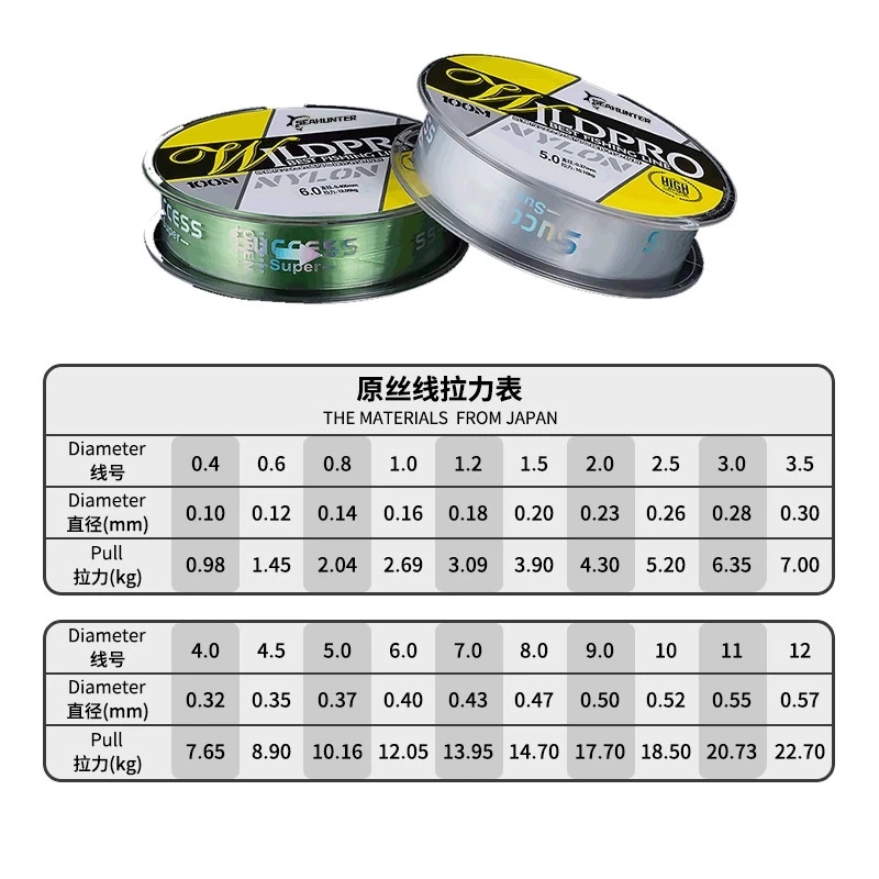 SEAHUNTER Nylon Senar Pancing 100 Meters, Garis memancing Transparan, Anti Keriting Mudah Tenggelam Kuat Fishing