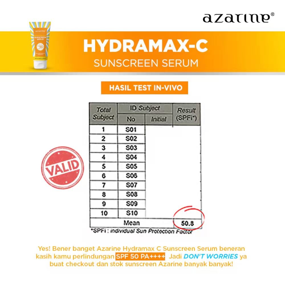 SUNSCREEN [ 100% ORI ] Azarine Hydramax-C Sunscreen Serum SPF50 PA++++ Untuk Semua Jenis Kulit 40ml