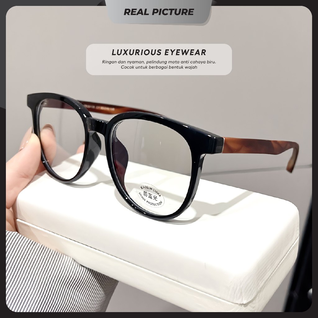 Colore.in Kacamata Photocromic Anti Radiasi Bulat Fashion Wanita Pria TR90+Metal Anti UV 30135