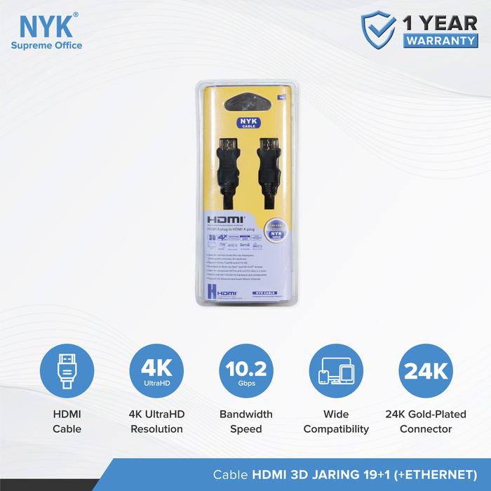 Cable NYK Kabel HDMI 3D 19+1 Ethernet 3 Meter