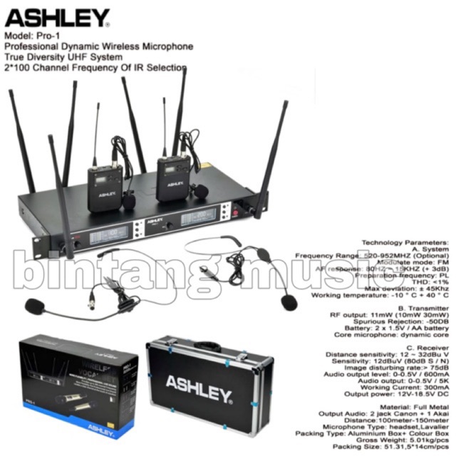 Mic wireless ashley Pro 1 headset jepit original Ashley pro1