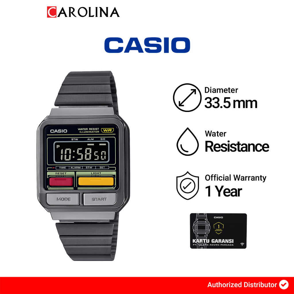 [Star] Jam Tangan Pria Casio Vintage A120WEGG-1B Black Stainless Steel Band