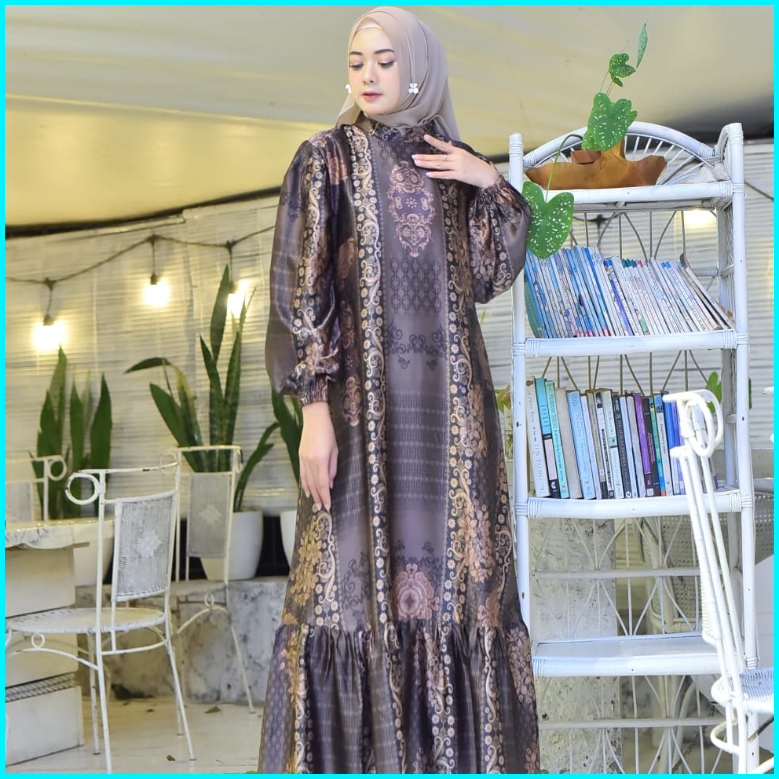 Dres Gamis Narissa Etnik Gisha Original Silk Premium Motif Terbaru Tangan Balon Busui Dress Muslim
