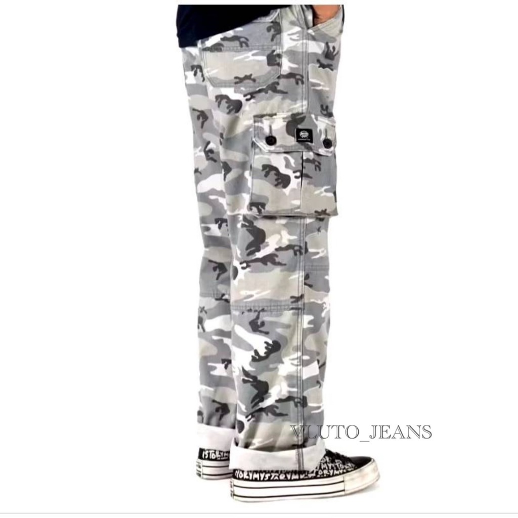 Celana Cargo Loreng Army Gombrong Tebaru / Cargo Camo Reguler Fit Standar Non Stretch