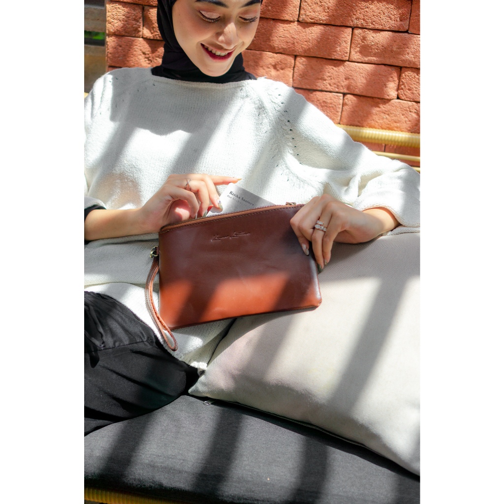 [Star] Kenes Leather Clutch Tas Tangan Pouch Unisex Kulit Asli SIMPLE - Free Gravir Nama