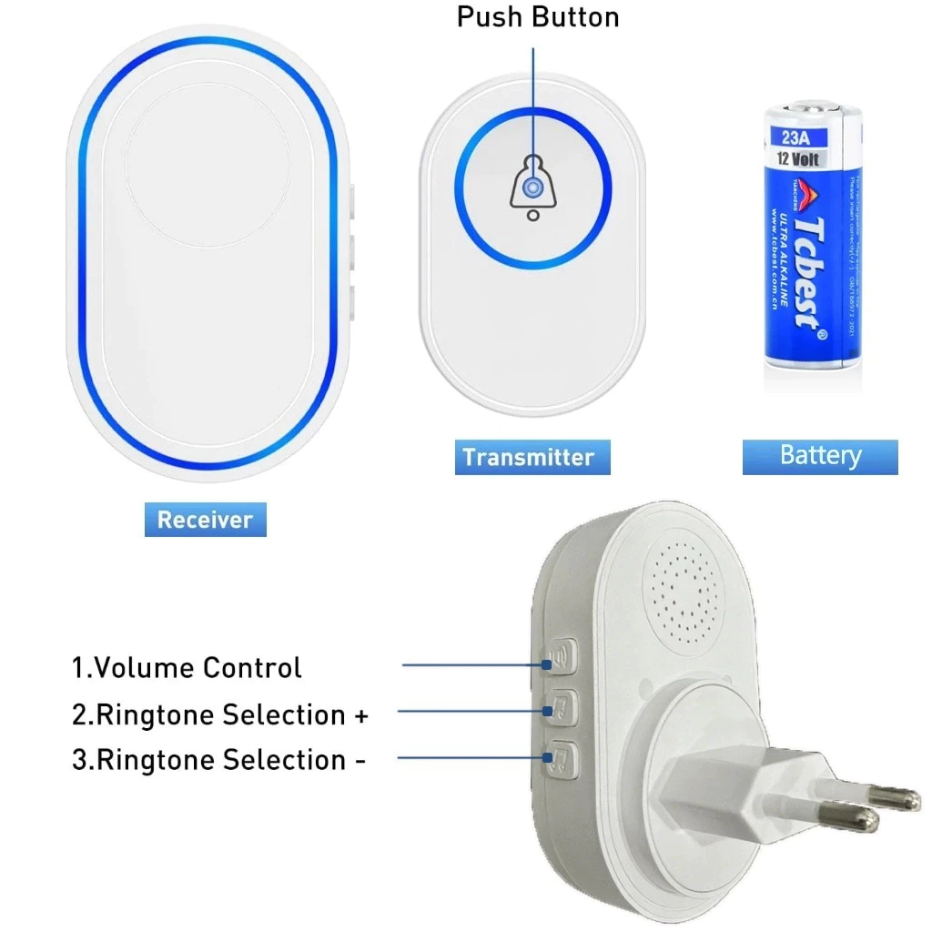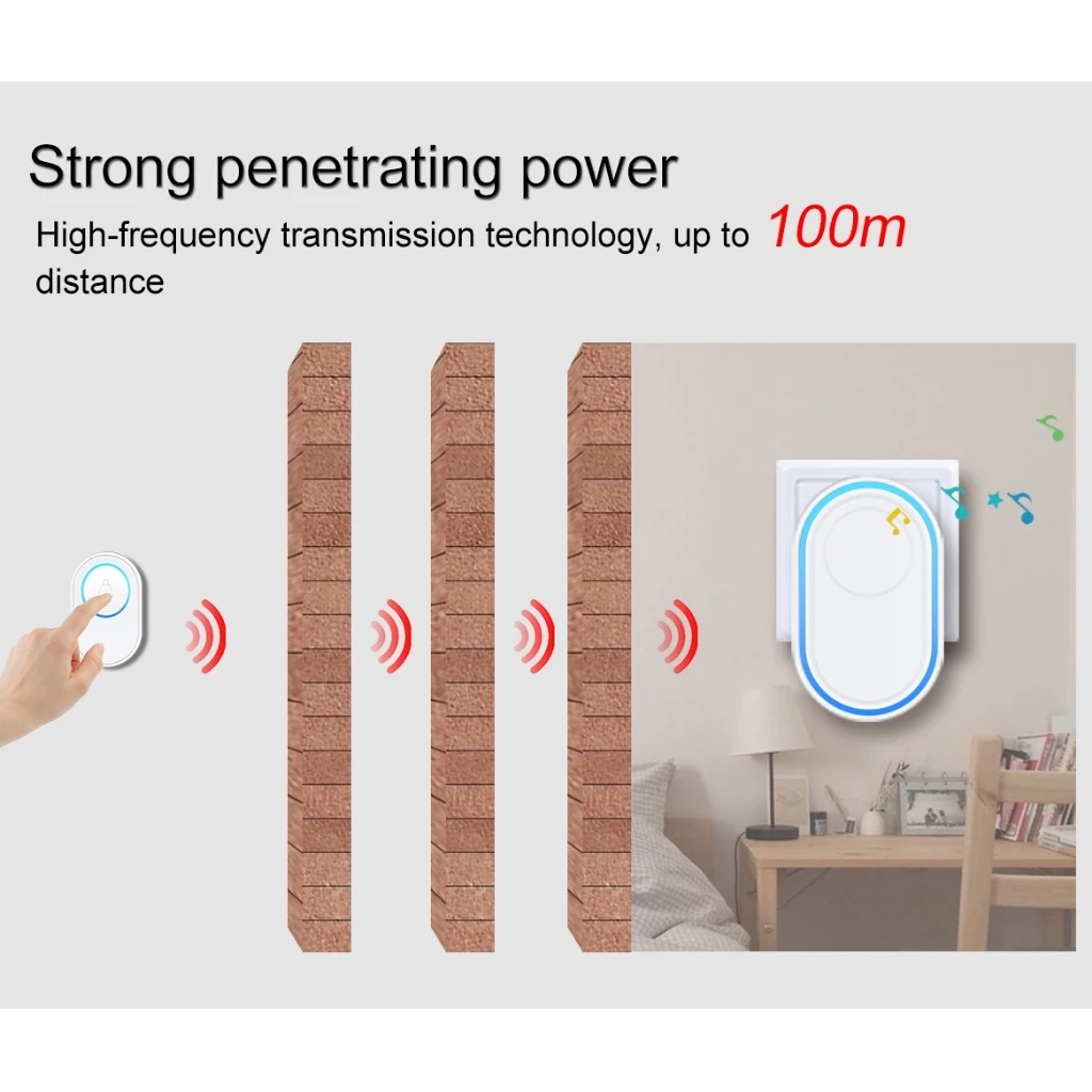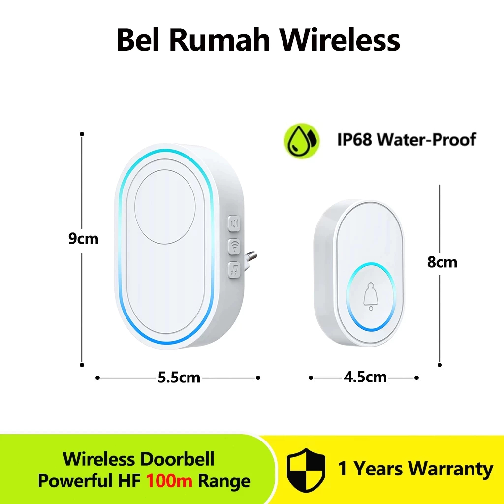 BEL RUMAH TANPA KABEL BEL PINTU RUMAH WIRELESS WATERPROOF LAMPU 58 RINGTONE RGB LAMPU AJAIB + 1 RECEIVER PINTAR PREMIUM