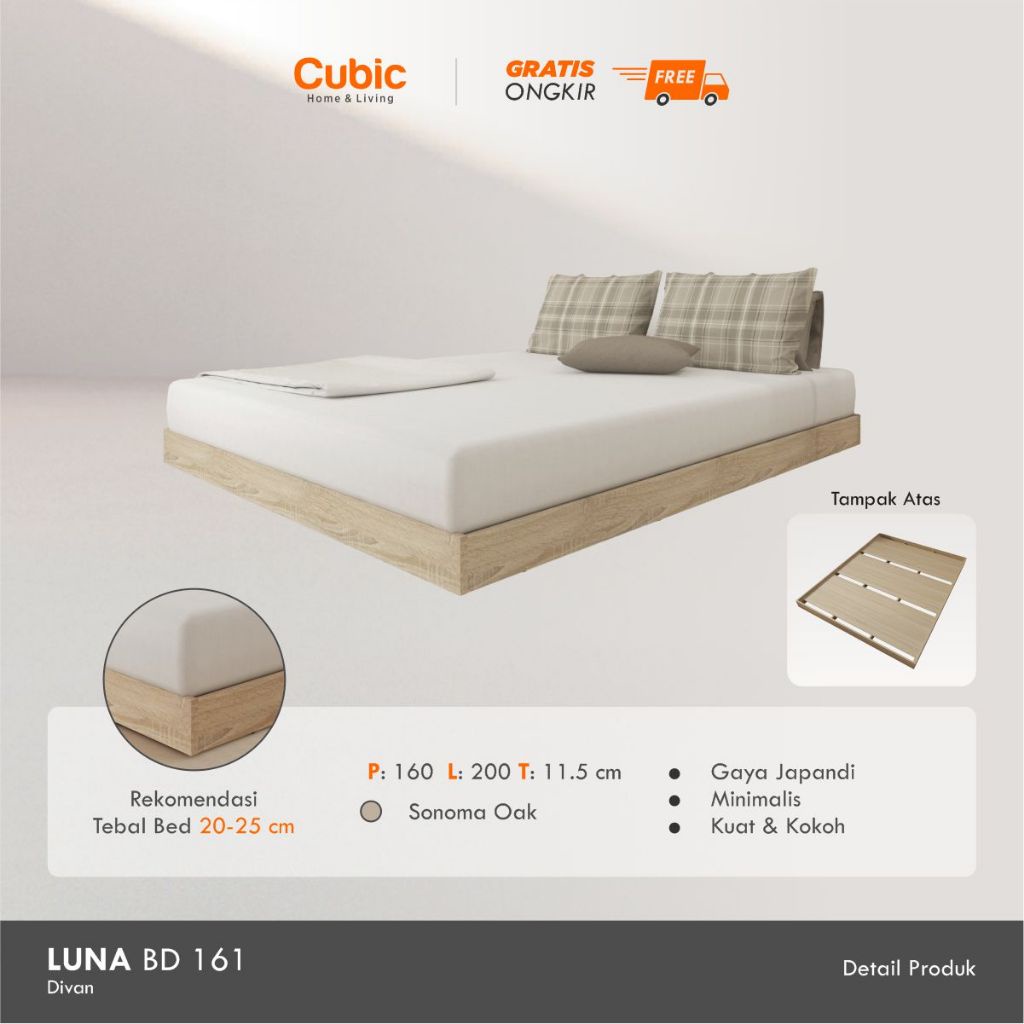 Ranjang Kayu dan sandaran kasur dipan Cubic 120X200 160x200 180x200 Tempat Tidur Divan besi Lipat Susun 2 Tingkat Murah