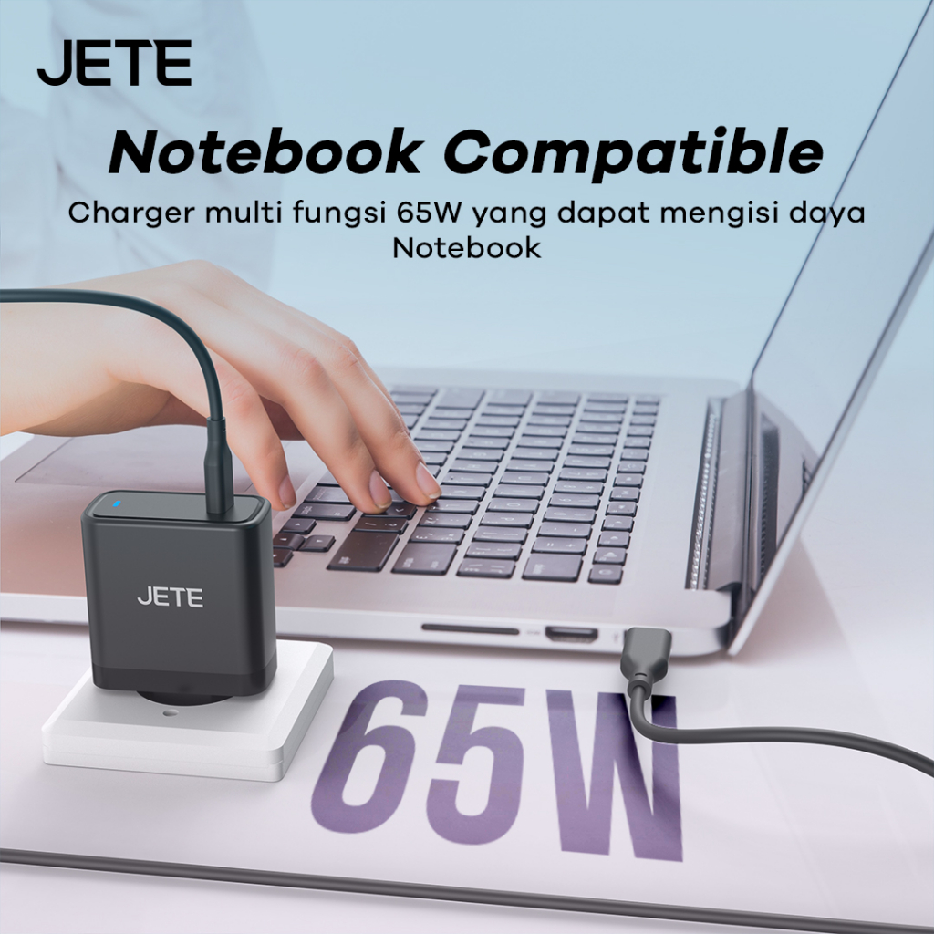 JETE Kepala Charger E32 Adaptor 65W USB Type C Super Fast Charging Travel Size Power Delivery Adapter