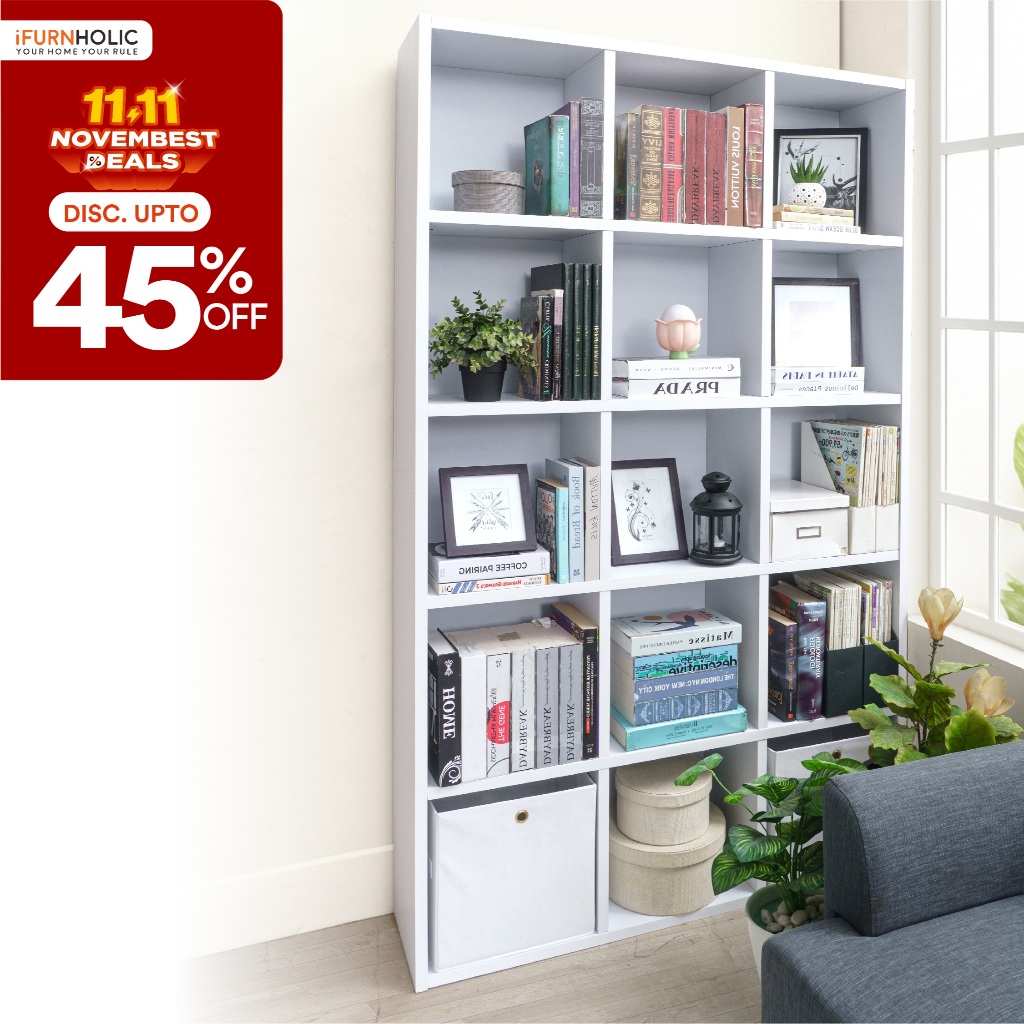 IFURNHOLIC Edwin Bookcase 3x5 I Rak Buku Susun Minimalis | Lemari Display Serbaguna | Buffet Pajangan Murah