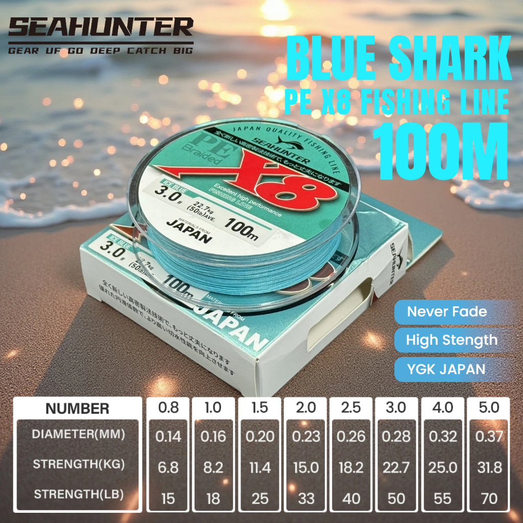 SEAHUNTER Blue Shark 100 Meters Senar Pancing, Garis memancing Transparan, Anti Keriting Mudah Tenggelam Kuat