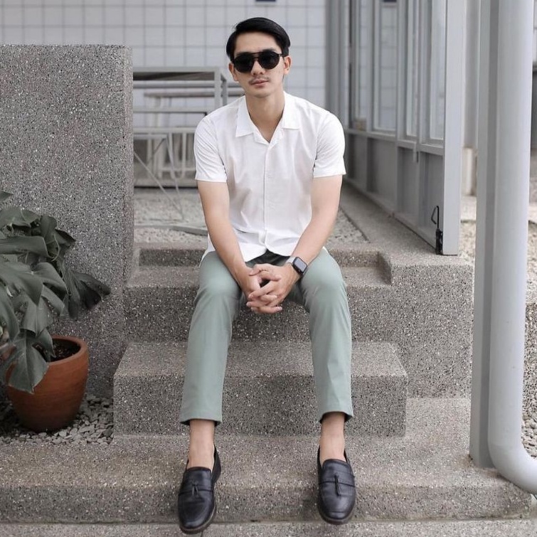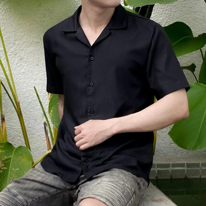 Kemeja Polos Pria Lengan Pendek V Neck Woolpeach Toyobo Premium
