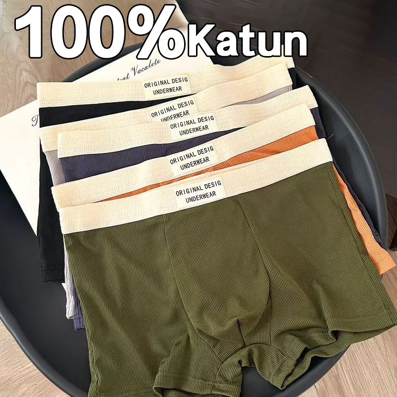 100% Katun Celana Dalam Boxer Katun Pria 4pcs - Boxer Premiu Antibakteri