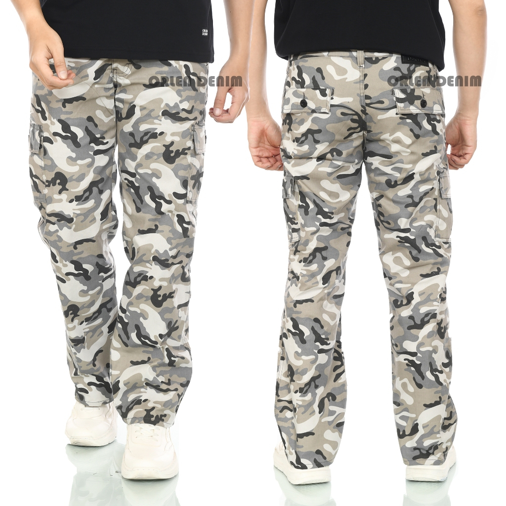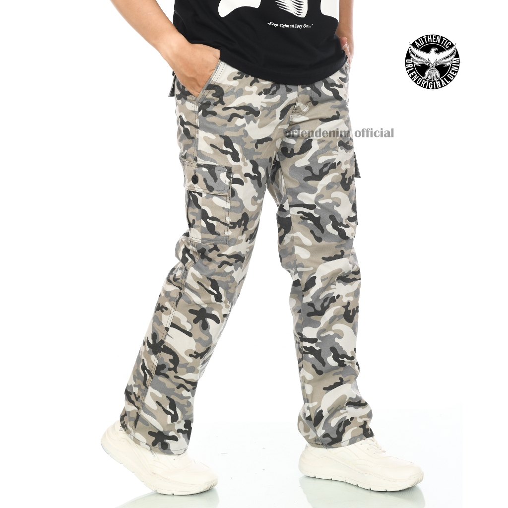 ORLEN DENIM - Celana Cargo Camo Loreng Pria Reguler Fit Gombrong Standart / Celana Pants Loreng