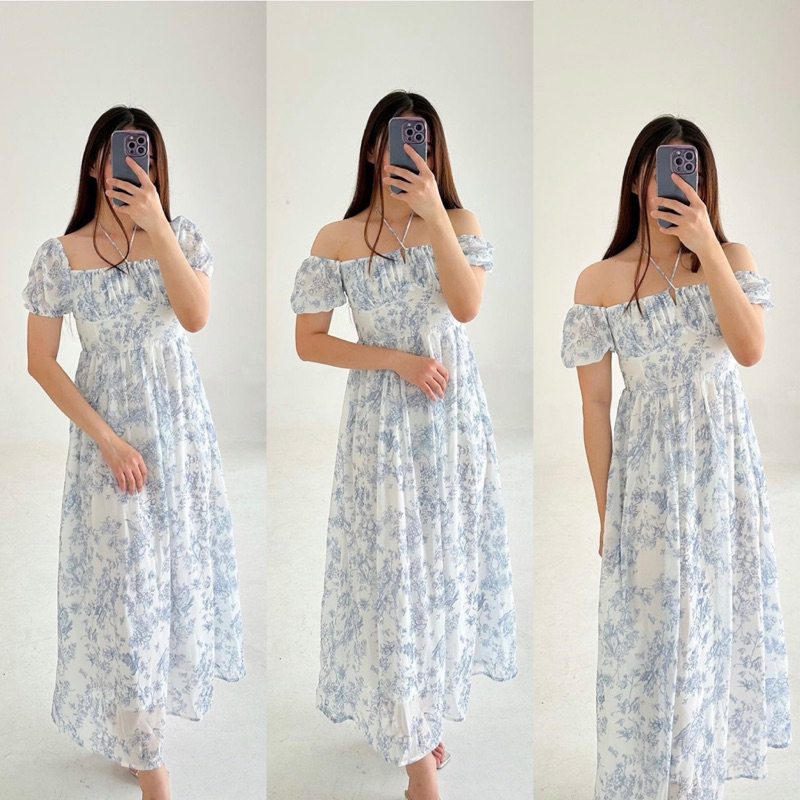 Dress Pantai D0813 Kanza Korean Style Floral Vintage Maxi Dress Pantai Dress Korea Terlaris
