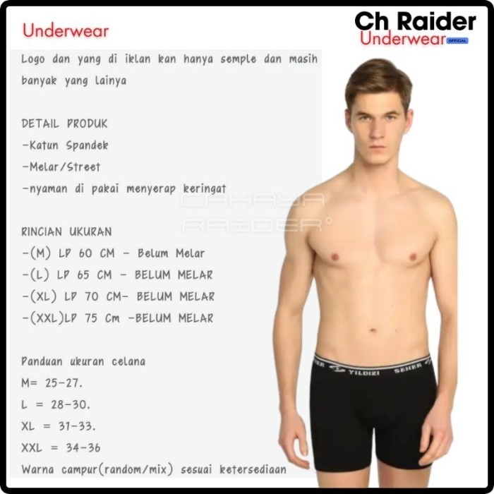 Celana Dalam Pria Boxer Isi 3 Pcs Bahan Katun Premium